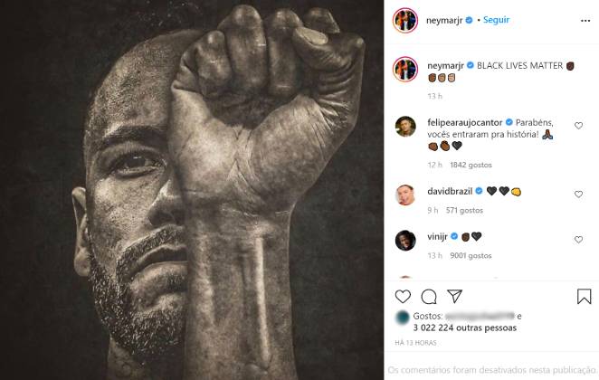 Em seu perfil no Instagram, o atleta publicou uma imagem e escreveu: “Black Lives Matter (Vidas Negras Importam)”.