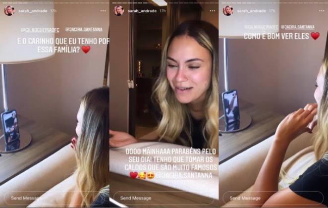 Sarah também compartilhou o momento em seus stories e declarou todo seu amor pela família: