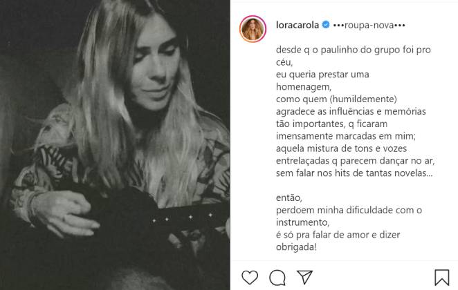 “Roupa Nova. Desde que o Paulinho do grupo foi pro céu, eu queria prestar uma homenagem, como quem (humildemente) agradece as influências e memórias tão importantes, que ficaram imensamente marcadas em mim;