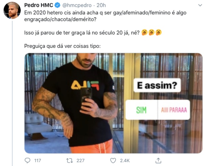 Porém, ele fez uma enquete bastante preconceituosa e usando um termo bem ofensivo para a comunidade LGBTQIA+.
