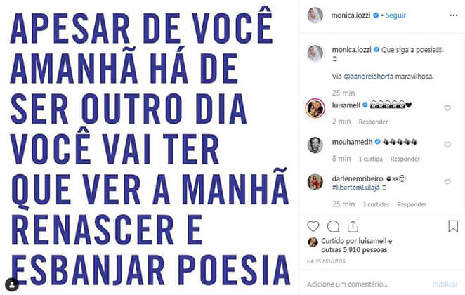 Famosos comemoram decisão: ‘Lula Livre’