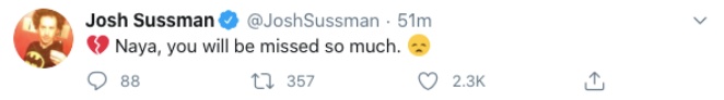 "Naya, você fará muita falta", destacou o ator por sua vez.