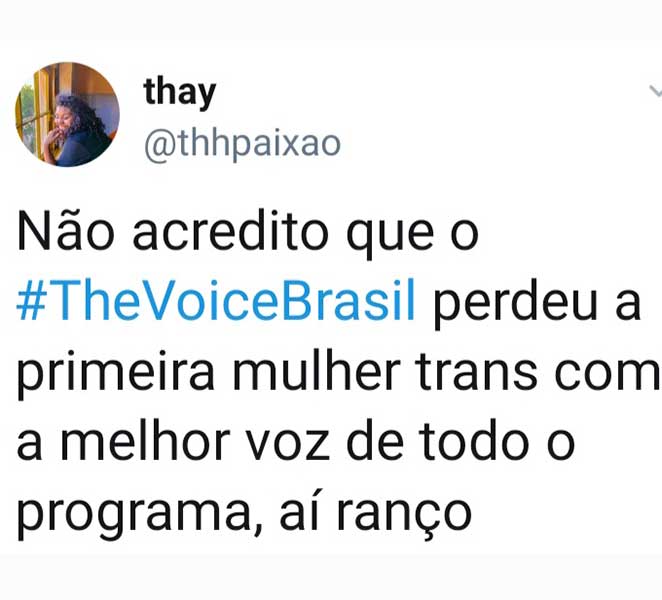 “Poderia fazer história com a primeira trans na final do The Voice, mas preferiu o mais do mesmo”, disse outra.