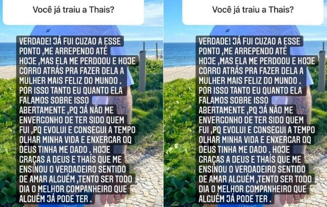 "Thais me ensinou o verdadeiro sentido de amar alguém, tento ser todo dia o melhor companheiro que alguém já pode ter", finalizou ele.