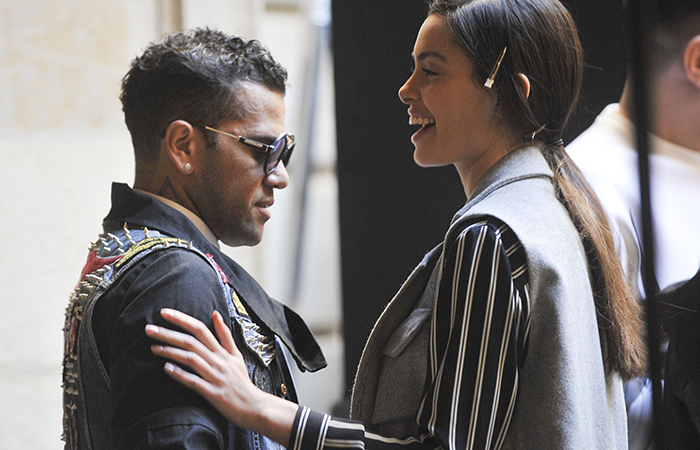 Daniel Alves caprichou no lado fashionista e na produção para poder marcar presença no desfile da namorada, Joana Sanz, que atravessou a passarela durante a Semana de Moda da Espanha.