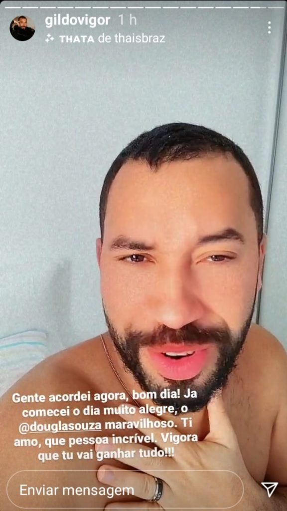“Gente, acordei agora, bom dia. Já comecei o dia muito alegre, o Douglas Souza, maravilhoso, te amo, que pessoa incrível! Te amo! Amigo, vigora! Vogora que você vai ganhar tudo!”, aconselhou o economista.