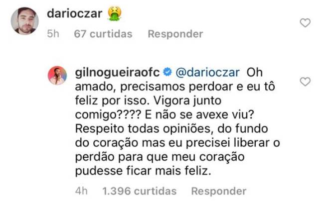 “Que nobre da sua parte, Gil! Amor dividido é amor multiplicado”, disse Ana Paula Renault.
