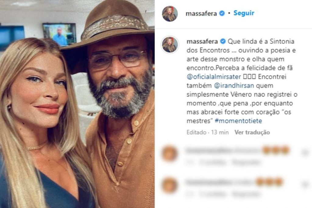 Grazi Massafera se encontra com Almir Sater: ‘Felicidade de fã’