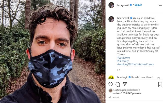 "Estamos em lockdown aqui no Reino Unido, então estou usando meu único exercício diário fora de casa para para fazer minha primeira corrida desde que machuquei minha perna (falarei mais sobre isso uma outra hora).Não foi [uma corrida] rápida, e certamente não fui longe, mas é um grande passo na minha recuperação e é meu primeiro passo para voltar às coisas depois de um Natal que pode ter envolvido mais do que algumas xícaras de vinho quente e um peru excepcionalmente gordo.", escreveu ele na legenda da publicação.