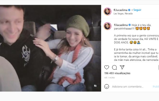 "Hoje é o teu dia, parceirinha! A primeira vez que a gente conversou de verdade foi nesse dia, há 22 anos. E já tinha tanta coisa 'tri' ali… Tinha a sementinha da mulher incrível que tu ias te tornar, da amiga mais confiável, da mãe mais atenciosa, da namorada mais sensacional, da parceira mais confiável", escreveu Lucas.