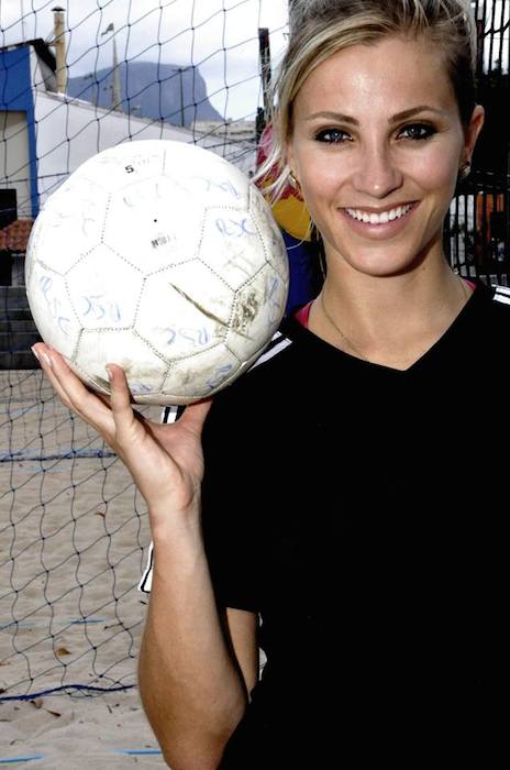 Rio: Bandeirinha Fernanda Colombo posa para fotos com a Miss Mundo Portugal