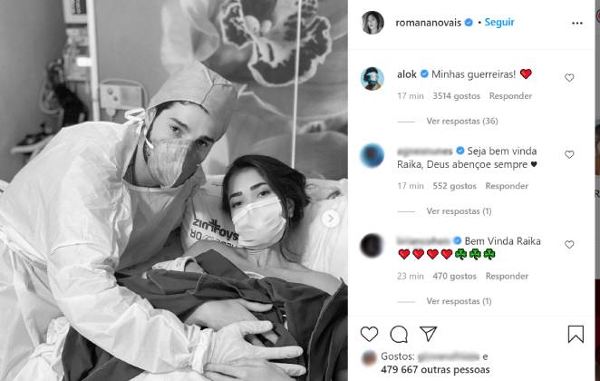 "Devido à uma complicação da Covid, entrei em trabalho de parto prematuro. A Raika nasceu ontem a noite, de parto natural. Tudo aconteceu muito rápido e graças à Deus ela nasceu muito bem. Nós duas estamos bem assistidas e em oração para uma boa recuperação. Nem tudo acontece como planejamos e os planos de Deus são sempre maiores e melhores que os nossos. Obrigada por todas orações e carinho de cada um de vocês", escreveu Romana.