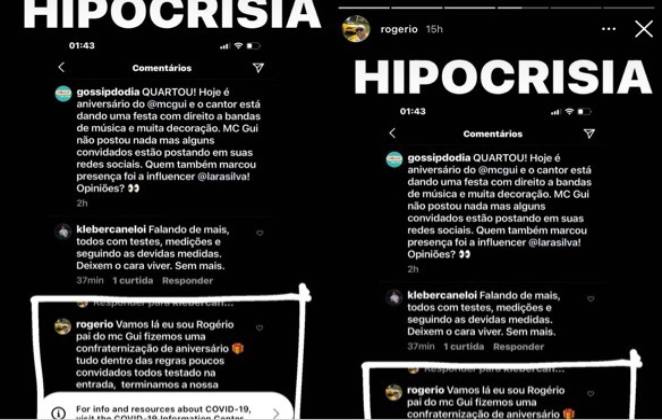 Eita! Após MC Gui compartilhar vídeos e fotos de sua festa de aniversário e gerar polêmica na web, com vários internautas apontando a formação de aglomerações e reunião de pessoas sem máscaras, o que vai totalmente contra as normas de saúde da OMS para conter o coronavírus, nesta quinta-feira (20) o pai do MC resolveu sair em defesa do filho nas redes sociais.