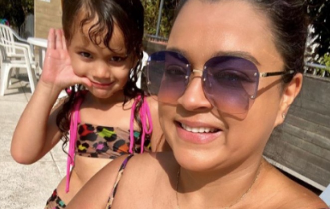 "Dia de piscina com a vovó Pretinha!!", escreveu a artista na legenda.