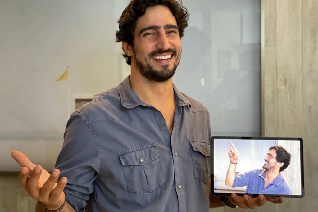 A mais recente publi de Góes nas redes sociais é para uma marca de eletrônicos, em que ele apresenta o mais novo tablet da empresa.