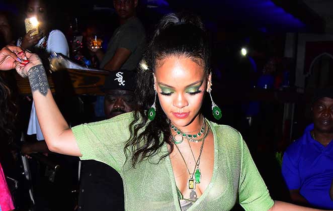 Rihanna está há três anos sem lançar uma música nova, mas parece que ela não está muito preocupada com isso, não. No início desta semana, a cantora foi vista em Barbados, sua terra natal, curtindo uma noitada em um dos bares mais conhecidos de lá.
