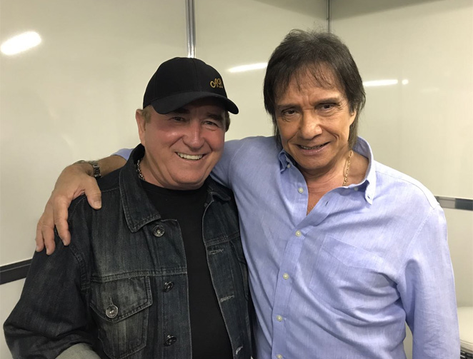 Em seu camarim, os amigos famosos de Roberto fizeram questão de levar um abraço.