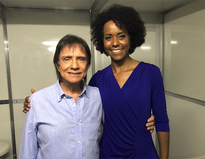 Maju Coutinho, a belíssima jornalista, que informa a previsão do tempo na Globo, também esteve por lá. E Roberto Carlos, além de agradecer muito a presença da repórter, disse que não costuma sair de casa, principalmente se for viajar,sem antes consultar a previsão do tempo feita por ela.