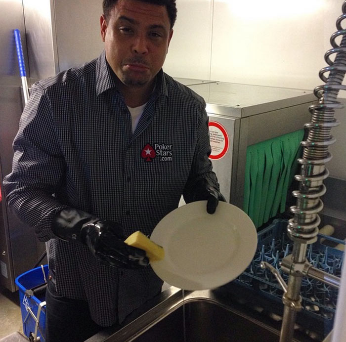 Ronaldo Fenômeno lava pratos após perder duelo de pôquer para Rafael Nadal
