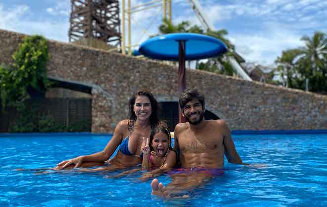 Seguindo protocolos de segurança, Deborah Secco e família se divertem no Beach Park