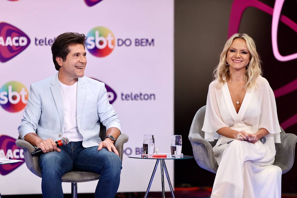 Eliana e Daniel em coletiva de imprensa do Teleton (Foto: Brazil News – Manuela Scarpa)
