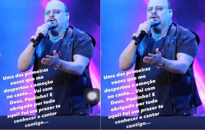 O cantor postou uma foto de Paulinho no palco em seus stories e na legenda escreveu o seguinte recado: