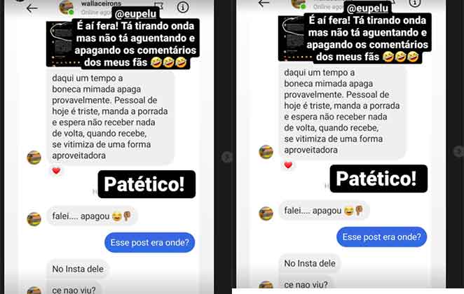 As imagens estão nas páginas do Instagram @digaoraimundos e @eupelu