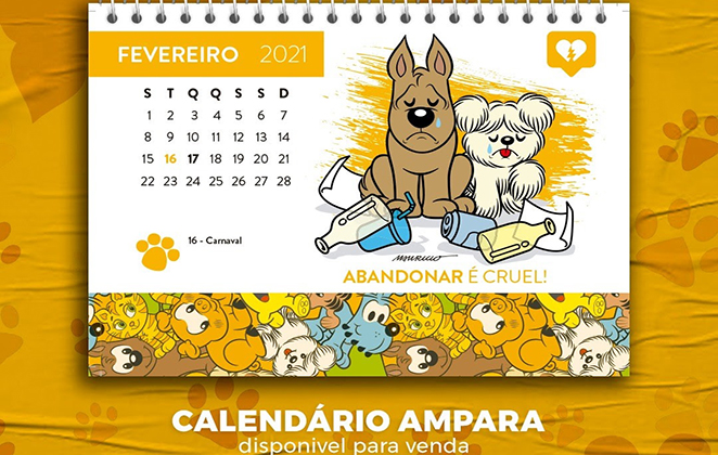 Os calendários já estão disponíveis para venda no site da instituição (amparanimal.org.br) e custam R$ 30,00 cada