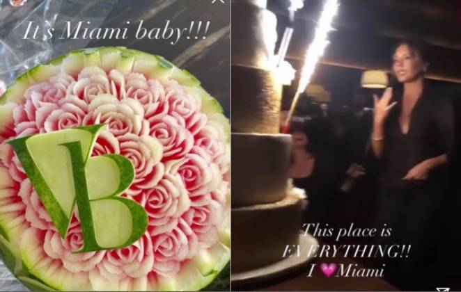 Em seus stories no Instagram, a estilista compartilhou momentos da celebração, que teve uma melancia personalizada com o nome de Victoria e um grande bolo com direito à velas especiais.