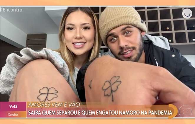 Virginia e Zé Felipe se conheceram pela internet e já estão morando juntos em Goiânia. Para a tatuagem, escolheram desenhar um trevo de quatro folhas.