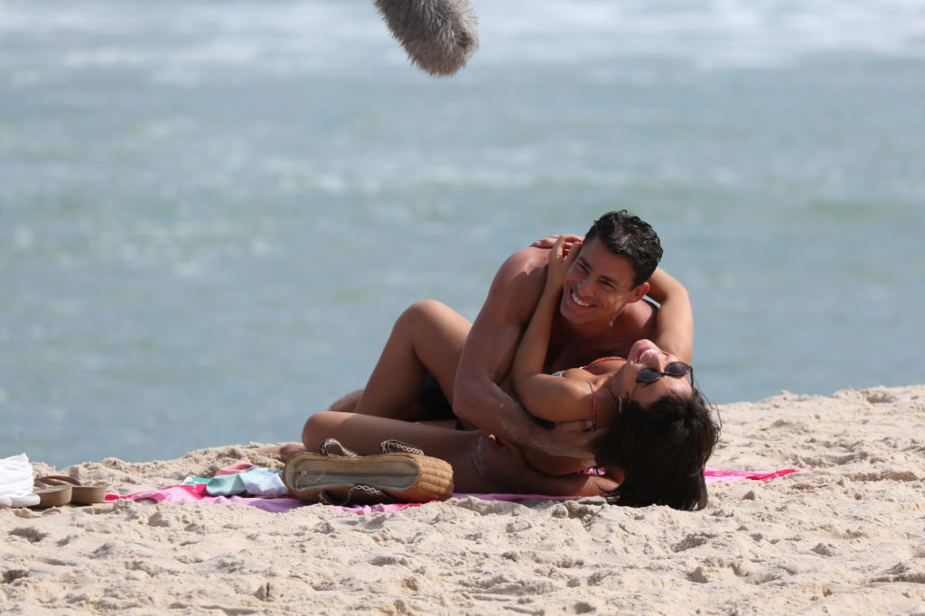 Cauã Reymond e Andréia Horta gravando na praia Foto (AgNews)