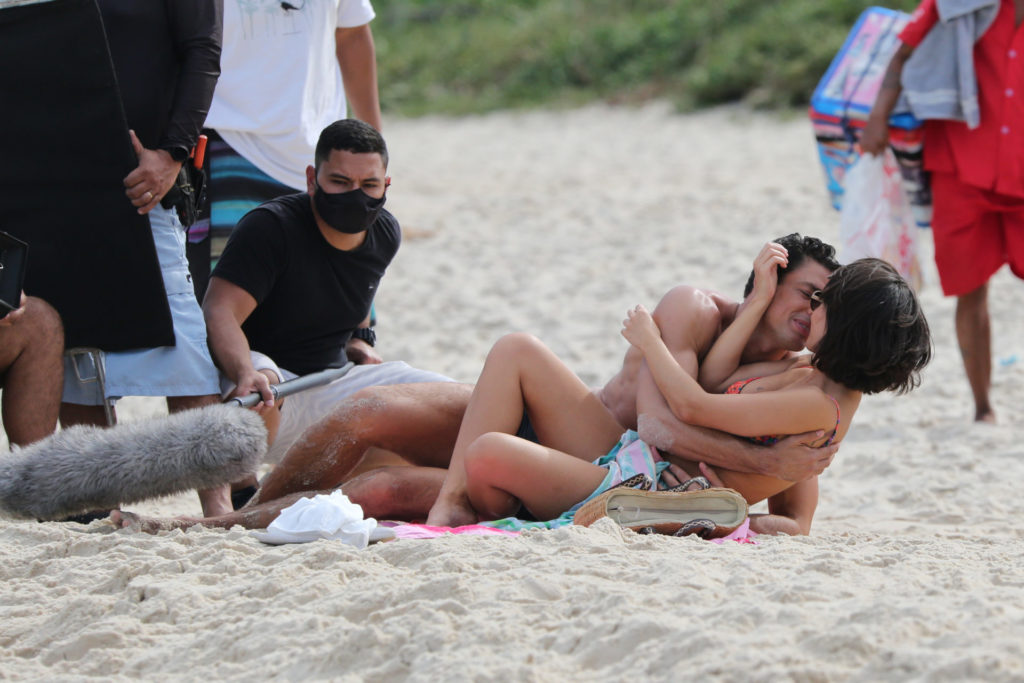 Cauã Reymond e Andréia Horta gravando na praia – Foto (AgNews)