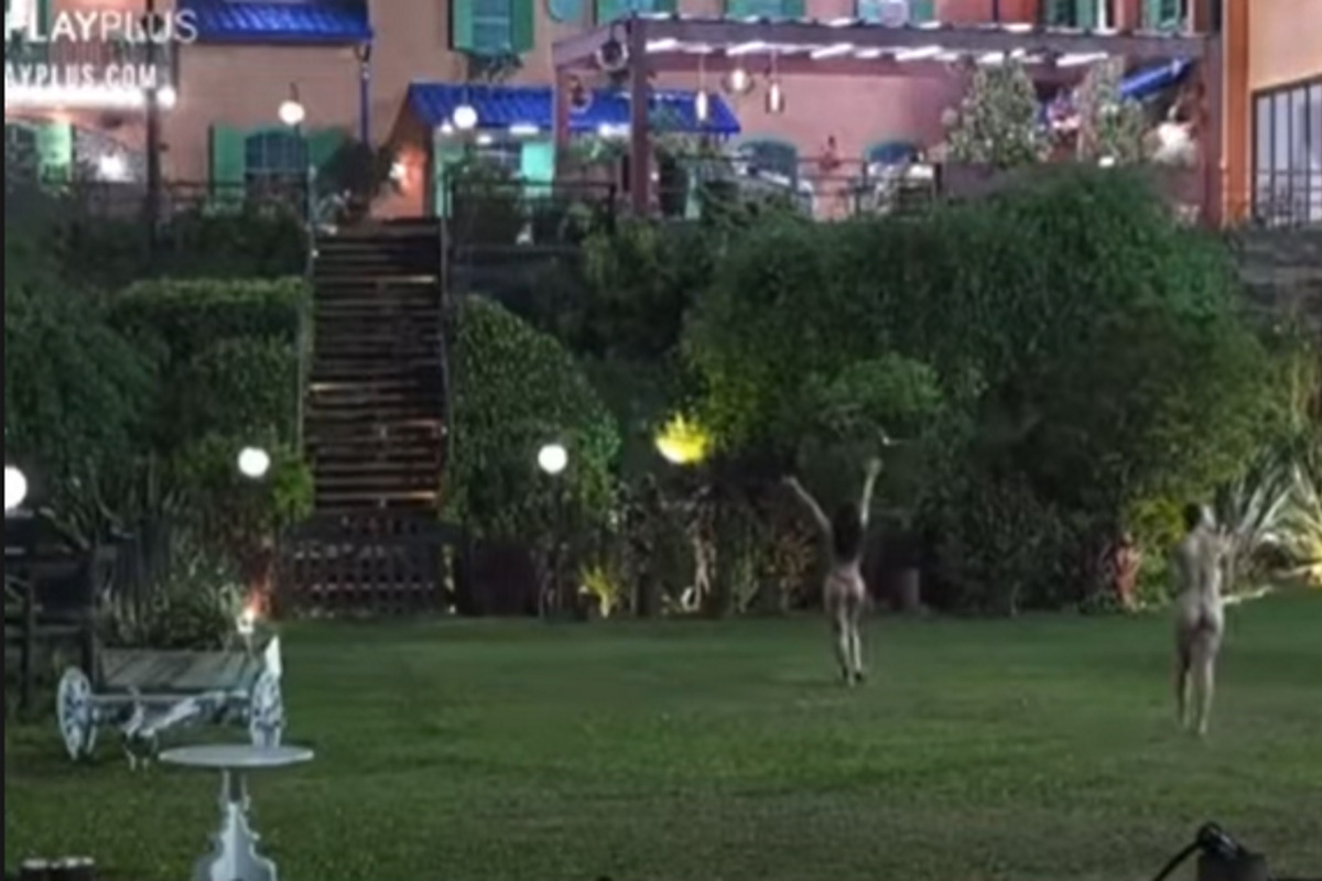 Aline e Dayane decidiram tomar banho de chuva, na noite de sábado, 9 de outubro. De biquíni, as peoas foram até o gramado e começaram a correr livres, leves e soltas. Elas foram até o cavalo, conversaram com ele e curtiram o visual da natureza.