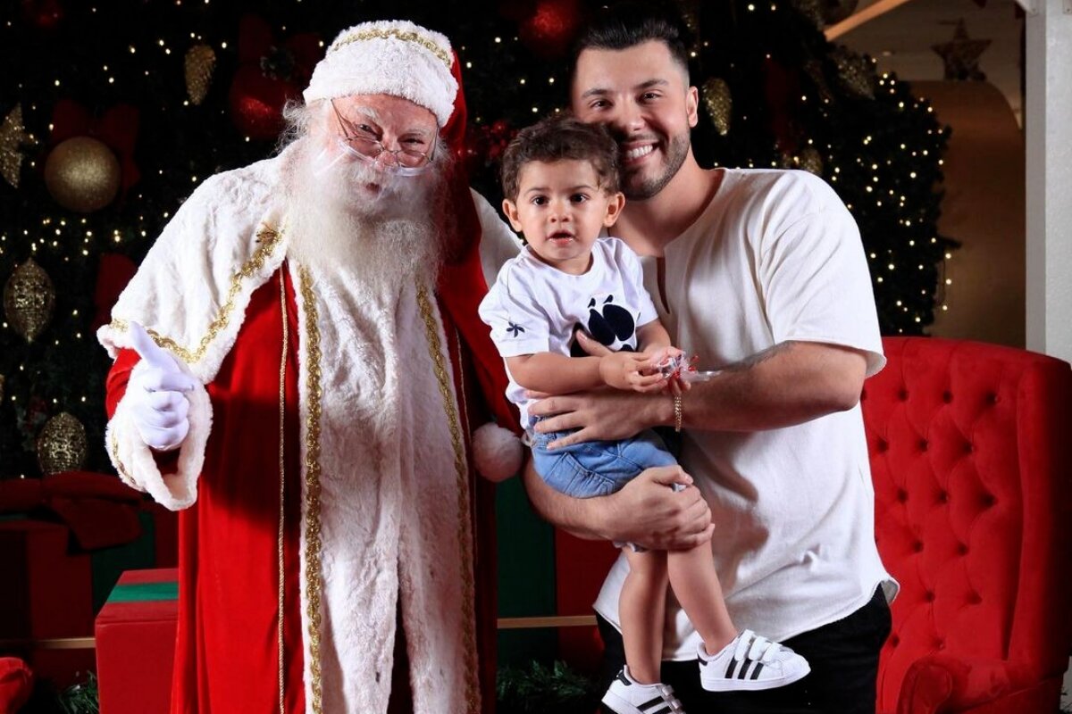 Muito amor e fofura numa imagem só! Murilo Huff explodiu a web de ternura ao compartilhar fotos do momento em que ele e o filho, Léo, fruto de seu relacionamento com a saudosa Marília Mendonça – que morreu no último dia 05 de novembro, vítima de um acidente aéreo fatal em Minas Gerais – posam com o Papai Noel em um shopping center de Goiânia, onde vivem. Nas imagens, o pequeno de quase 2 anos encanta ao surgir sorridente enquanto posa para o registro no colo do papai coruja.