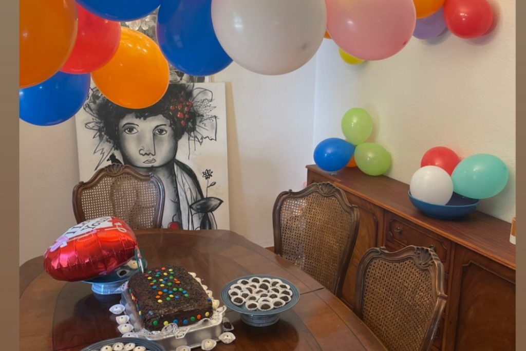 Cíntia e as crianças receberam Pedro com bolo, bexigas e docinhos . “De volta na casinha em Portugal. Estava com uma saudade daqui. Agora está tudo completo, tudo lindo. Pedro já está na pista de skate com as crianças”, disse a modelo.