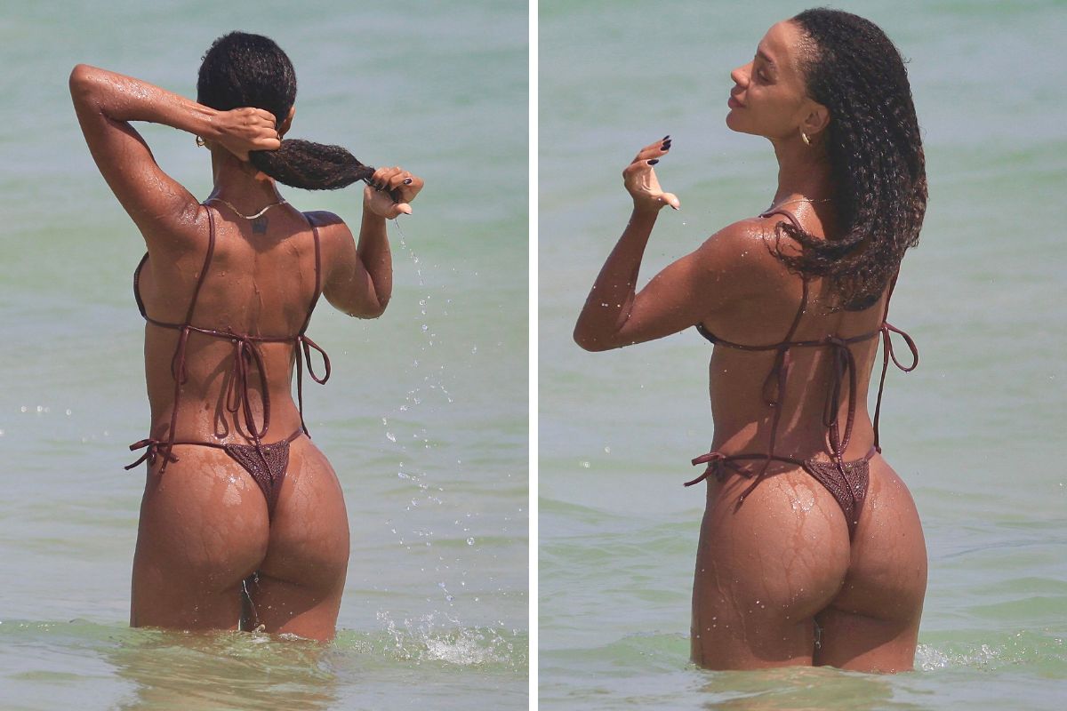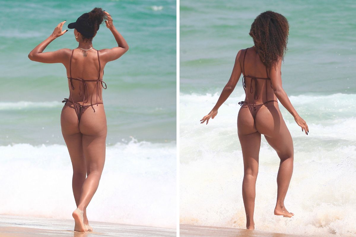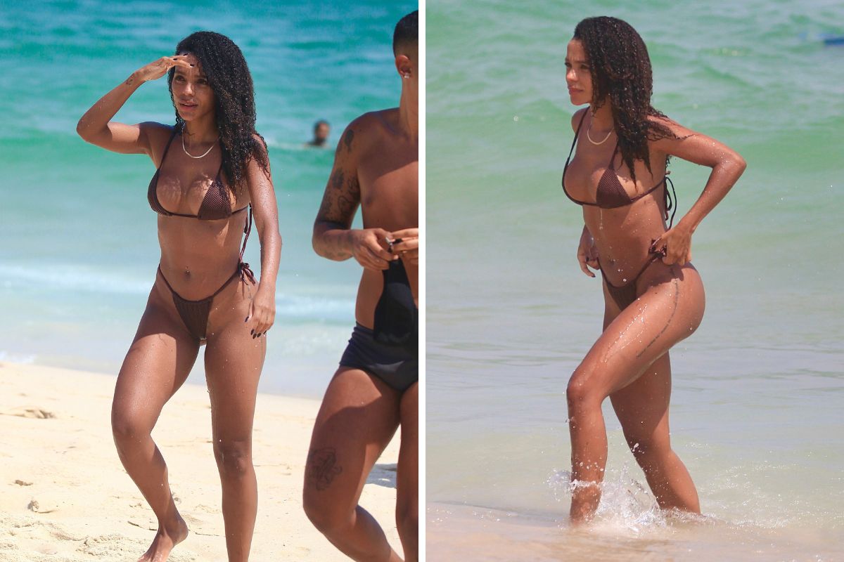 Brunna Gonçalves exibe curvas e cachos em dia quente de praia